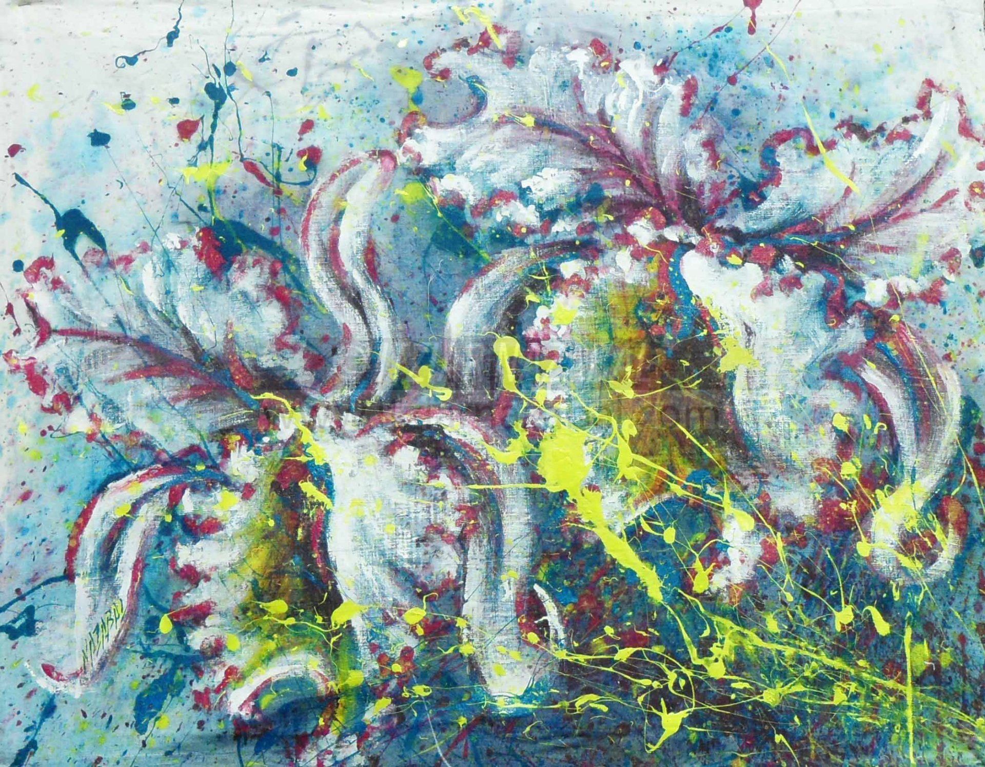 Con lo que Itziar, a escondidas de su abuela y con la complicidad de su familia, creo una primera obra; y siguió pintando sobre el tema, al sentirse tan cómoda e ilusionada al ver que esa Serie se convertiría en un Proyecto junto a su Abuela, llenos de momentos y consejos de ella. Llegó el cumpleaños, y junto a su hermana Itsaso, fueron a celebrarlo con la Abuela como habitualmente, y le enseñaron entre las dos hermanas, las 5-7 obras que había creado, para que (aunque Itziar hubiera creado una, la primera en particular pensando en ella... ), eligiera la que más le gustara... Y cual fue la sorpresa.... que la Abuela eligió la primera!!